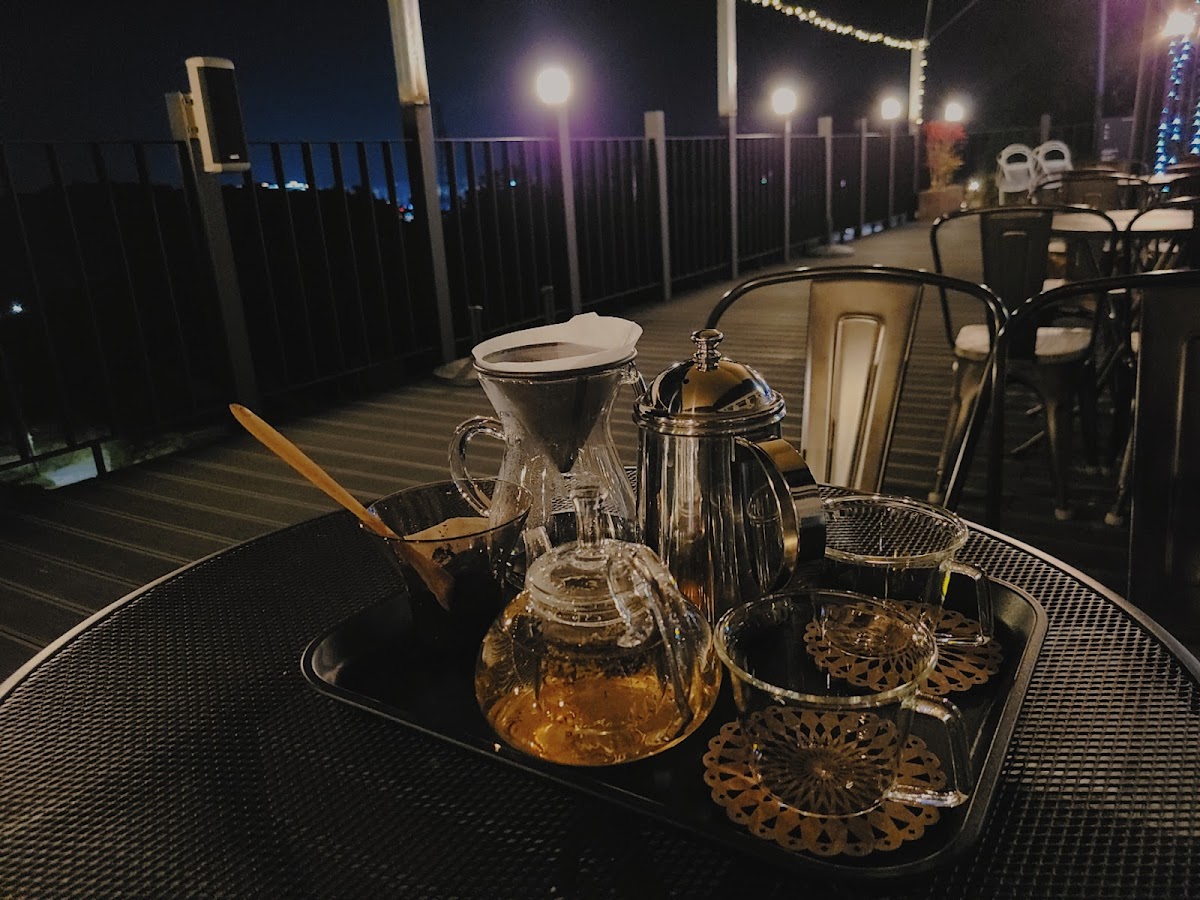 The café opens its doors at 11 AM, inviting you to enjoy a cup of coffee while soaking in the picturesque surroundings. While some reviews note that the coffee might be 'average,' the experience of sipping your drink on the outdoor terrace, gazing over the autumn foliage and majestic mountains, is simply unforgettable.